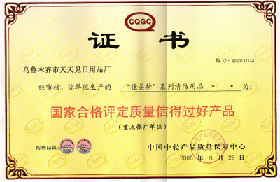 2005年8月25日佳美特系列產(chǎn)品被國家評(píng)定為質(zhì)量信得過好產(chǎn)品稱號(hào)。