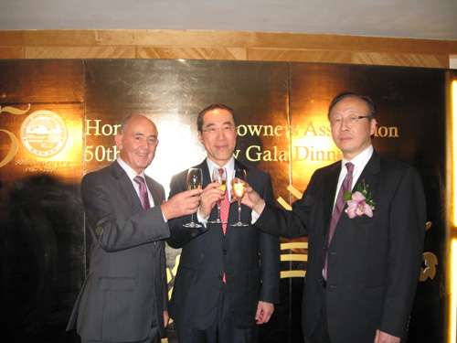 香港船東會成立于1957年,今年踏入第50個年頭,在悠長歷程中,許多名人曾擔任過該會主席一職。昨晚可謂衣香鬢影,船東會邀請不少政商界知名人士到場恭賀,包括晚宴主講者全國政協副主席、前香港船東會主席董建華,主禮嘉賓署理行政長官唐英年,運輸及房屋局局長鄭汝樺,立法會(航運界)議員劉健儀,行政會議成員梁振英,中國交通部代表水運司司長宋德星,中船總公司,中船重工集團及中外運集團、工商銀行、中國銀行等代表亦應邀出席。商界方面則有東方海外集團主席董建成,萬邦集團主席曹文錦,合和航運主席許志勤,萬利輪船董事總經理顧建舟、泰昌祥航運主席顧建綱。因中風而久未露面的華光航運主席趙世光,在妻子何俐俐攙扶下徐徐步入會場,可謂相當重視船東會的大日子。還有不少來自不同地區的船級社代表,外國航運企業等負責人等亦到場祝賀。