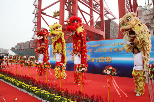 2007年11月26日, 蛇口集裝箱碼頭(SCT)與以星綜合航運(以星)迎來了雙方合作10周年的生日,為紀念該歷史性時刻,以星總裁Doron Goder先生及高層特從以色列遠道而來,在SCT隆重舉行“SCT與ZIM攜手10周年慶典”。出席慶典來賓主要有相關政府行業領導,客戶代表,雙方公司中高級管理人員及媒體等200余人。慶典正式開始前,招商局集團總裁傅育寧博士提前到達,在SCT大樓12層會見以星高層。