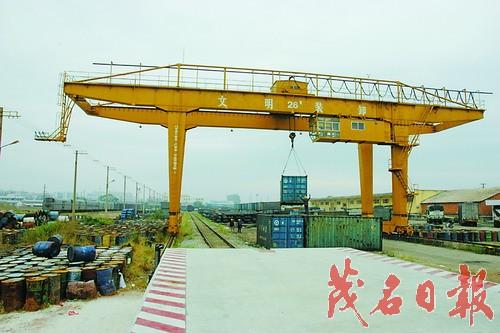 圖為三茂鐵路茂名物流公司大型機(jī)械在運(yùn)作情景。