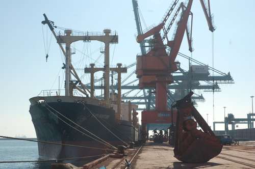 圖:停靠在秦皇島港碼頭的貨船