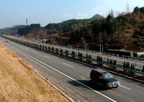 12月11日,汽車行駛在貴遵公路改擴建的高速公路上。貴遵公路扎佐至南白高速公路改擴建工程起自貴陽市修文縣扎佐鎮(zhèn),經(jīng)息烽縣至遵義縣南白鎮(zhèn),路線全長84.5公里,將于12月26日實現(xiàn)通車。改擴建后的貴遵公路扎佐至南白高速公路段,是渝湛國道主干線在貴州省境內(nèi)的重要組成部分。