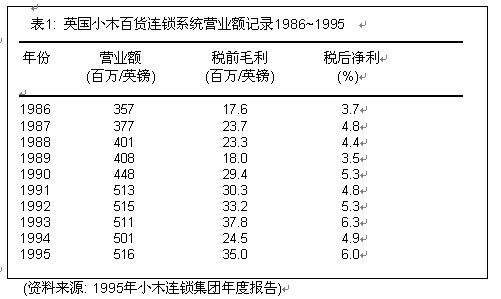 盡管1996年經(jīng)濟(jì)景氣不振,對(duì)零售業(yè)者的銷售沖擊很大,整體零售業(yè)的年銷售總額成長(zhǎng)率不超過(guò)4%,但經(jīng)過(guò)初步改造后的小木百貨連鎖仍然表現(xiàn)亮麗: