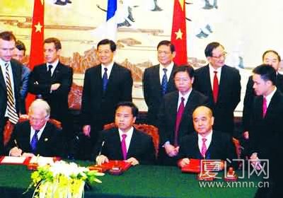 11月26日,在中國國家主席胡錦濤及法國總統薩科齊的共同見證下,廈門市與法國達飛海運集團、香港新創建集團在人民大會堂河北廳舉行了廈門海滄港區開發戰略合作協議簽約儀式。廈門市委副書記、市長劉賜貴與法國達飛集團Jacques R.saade主席、香港新創建集團鄭家純總裁分別代表三方進行簽約。