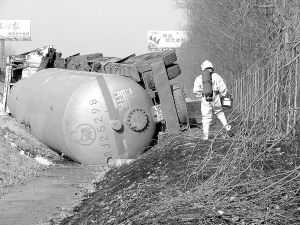 人民網(wǎng)·天津視窗2月12日訊:運載危險品的罐式貨車沖下高速公路,公安、消防、安監(jiān)等部門在現(xiàn)場監(jiān)護了約16個小時,才將險情徹底排除。