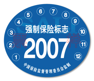 交強(qiáng)險(xiǎn)內(nèi)置型保險(xiǎn)標(biāo)志(正面)