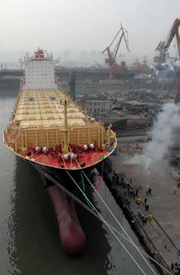 這艘“駿城”號集裝箱船建造總周期314天,水下建造周期40天,即由出塢到航海20天,開始航海到交工20天,并且實現了水上安裝、水下調試的目標,顯示出中國造船業趕超世界先進船廠的能力。這是大連船舶重工建造的第20艘同類型船,而這家公司此種類型船的訂單總數已經達到了46艘,形成了批量生產。