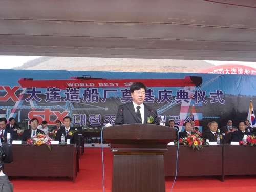 圖:韓國STX造船公司在大連長興島投資造船廠舉行開工儀式