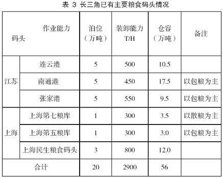 水路交通是該地區(qū)的最主要的優(yōu)勢,長江及沿海遍布26個(gè)大小港口。長江和京杭大運(yùn)河縱橫交錯,內(nèi)河航運(yùn)便利;同時(shí)擁有上海港、舟山港和寧波港等全國性優(yōu)良的港口。各港口開始逐步建立自己的專業(yè)糧食碼頭和裝卸設(shè)備,以提高糧食裝卸效率(見表3)。