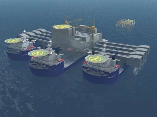 圖:半潛式重型運輸船駛至并運走石油平臺上層