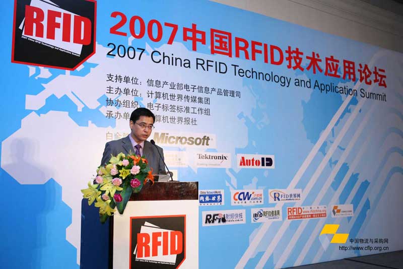 2007中國RFID技術(shù)應(yīng)用論壇日前在北京國賓酒店隆重舉行。本次活動由計算機(jī)世界傳媒集團(tuán)主辦、計算機(jī)世界報社承辦,得到了信息產(chǎn)業(yè)部電子信息產(chǎn)品管理司支持,以及中國電子標(biāo)簽標(biāo)準(zhǔn)工作組大力協(xié)助,并受到社會各界人士的普遍關(guān)注。來自信息產(chǎn)業(yè)部、科技部、交通部等相關(guān)政府部門代表,相關(guān)科研院所專家,電子制造、金融、服裝、包裝、商品零售、物流、安全、航空等領(lǐng)域的國內(nèi)外知名用戶代表,芯片、標(biāo)簽、讀卡設(shè)備等相關(guān)RFID硬件廠商、系統(tǒng)集成商、軟件中間件、方案、信息技術(shù)服務(wù)提供商以及相關(guān)渠道分銷商等將近400人參加了本次論壇。