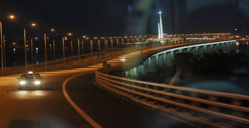 深港西部通道正式開通,一輛出租車正穿行深圳灣公路大橋。