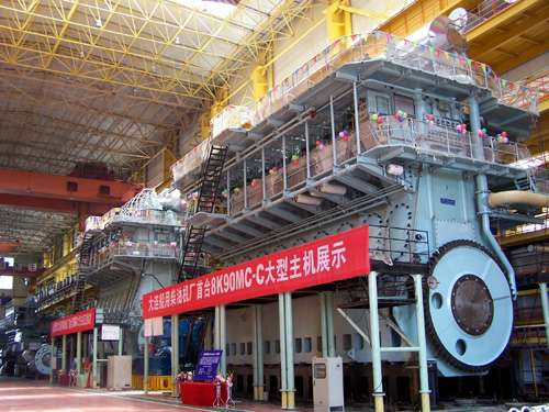8K90MC-C機專門為滿足大型集裝箱船對高航速要求設計的,目前世界上僅有幾家造機廠能夠制造這種主機。此前,單機功率在5萬馬力以上的主機幾乎為日、韓所柯斷,中國船廠建造的大型集裝箱船主機也完全依賴進口。