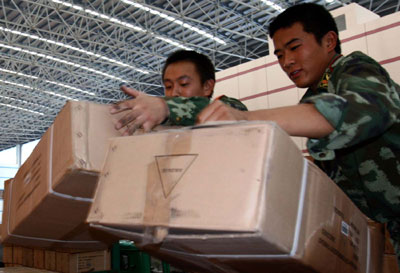 邊防戰(zhàn)士在搬運(yùn)倉庫中積