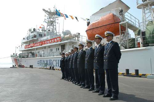 圖:上海海事局率先制定具體辦法,接受中資遠洋船回籍登記。圖是海事局在碼頭待命執行公務。
