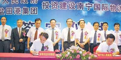 5日晚,南寧市人民政府和深圳鹽田港集團(tuán)在深圳市五洲賓館就投資建設(shè)廣西南寧國(guó)際綜合物流園項(xiàng)目簽署合作意向書(shū),這標(biāo)志著我市打造中國(guó)—東盟區(qū)域性物流基地工作邁出了實(shí)質(zhì)性的一步。