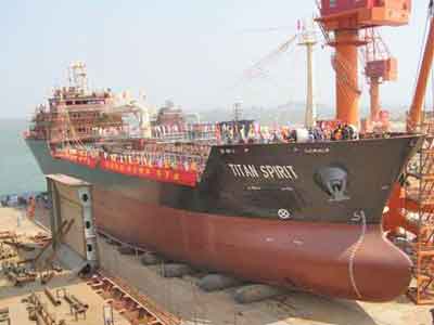 圖:泉州船廠建造第二艘成品油輪‘泰山精神’號下水