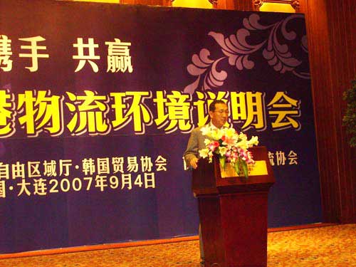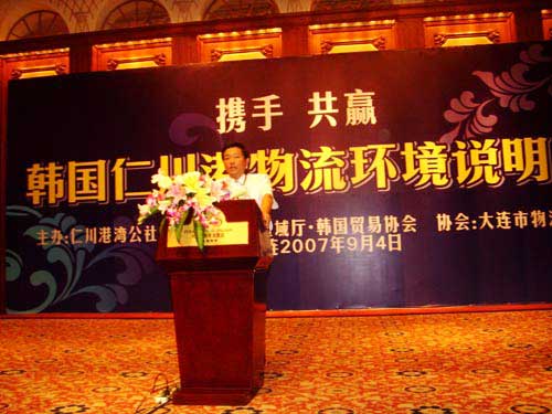 韓國仁川港灣公社副社長樸亨淳在會上就大連港與仁川港的現狀做了對比,認為仁川港在年均處理量以及開港時間等方面同大連港有很大程度的相似點,同時分析了韓國的貿易、物流現狀,以及仁川港在中韓貿易中發揮的巨大作用。