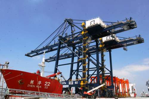 珠海國際貨柜碼頭二期將建成兩個5萬噸級集裝箱泊位,兼顧7萬噸級的集裝箱船靠泊作業,岸線長824米,航道水深14.5米,面積56公頃,主要設施包括8臺集裝箱岸吊和24臺輪胎龍門吊,是珠三角西部唯一的天然深水港口。