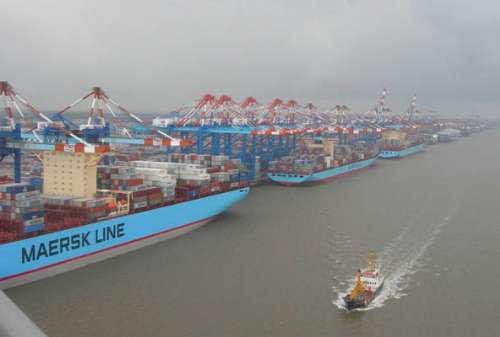 圖:歐洲港口多個泊位由一家船公司貨柜船靠泊的情況非常少見。在經濟衰退之下,這種現象再也看不見了