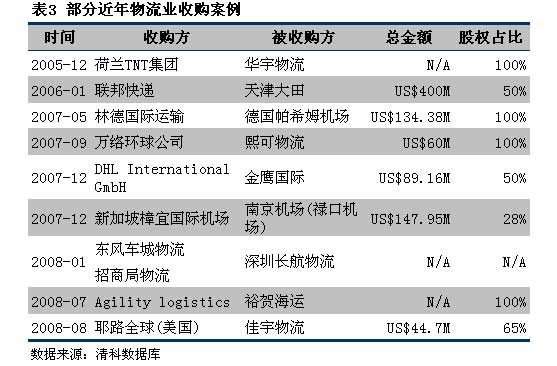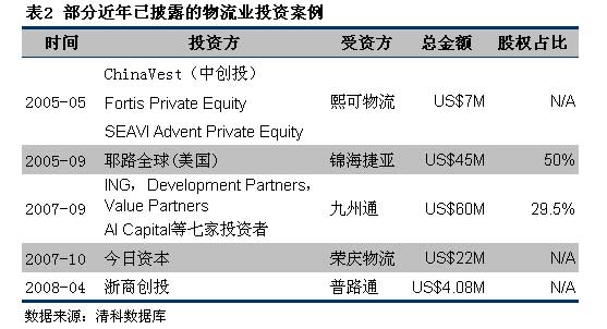 2. 民營物流企業(yè)。由營業(yè)收入超億元甚至10億元的私營物流企業(yè)組成。這個群體也是最受風投和私募基金青睞的投資對象。與國有企業(yè)相比,其單純、簡單的背景和股權關系都具有很強的吸引力,而且企業(yè)各有專攻,具有較強的發(fā)展?jié)摿Γ?