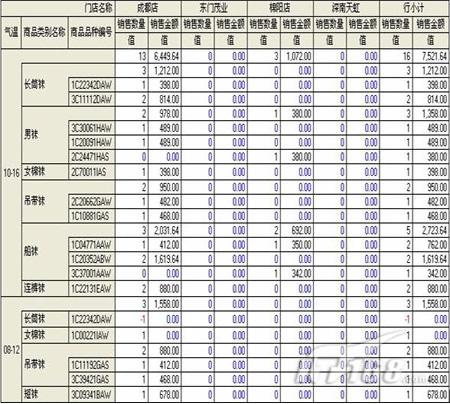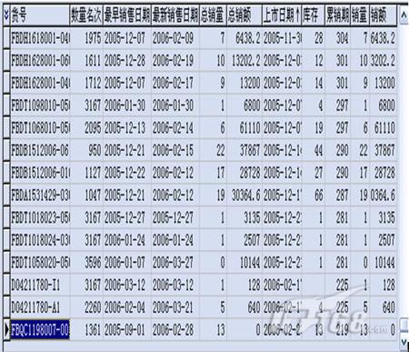 1、原始銷售數(shù)據(jù)的統(tǒng)計及分析:訂貨的目的是為了銷售,也就是說,訂貨應(yīng)該圍繞著銷售來進(jìn)行的。所以,在參加訂貨會之前,我們必須統(tǒng)計出去年本季的銷售數(shù)據(jù),以這個銷售數(shù)據(jù)作為依據(jù)進(jìn)行訂貨。銷售數(shù)據(jù)的屬性可以多樣,下圖中列出了一個兩個簡單的銷售流水報表格式: