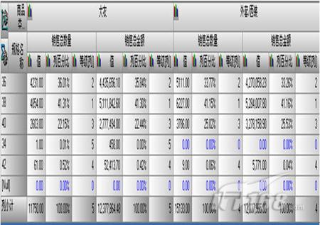 5、各類別尺碼占比:在訂貨中尺碼的確定上,不能想當(dāng)然。有些代理商認(rèn)為,我們是北方的,應(yīng)該大碼偏多點。這是不夠精確的,要以銷售分析出一個具體的尺碼比例來。另外,不同類別在同一地區(qū)的銷售中其尺碼比例也可以存在差異。比如,按常規(guī)來講,女裝中吊帶是比較挑人的,一般偏胖的人很少穿吊帶,可能小尺碼的銷售占比會略多一點;而風(fēng)衣類別由于一般是寬松型的,有些品牌的風(fēng)衣可能還比較職業(yè),可能就偏大碼的銷售要更好一點……這些都可能產(chǎn)生區(qū)別,所以要以銷售數(shù)據(jù)的分析結(jié)果為依據(jù)。