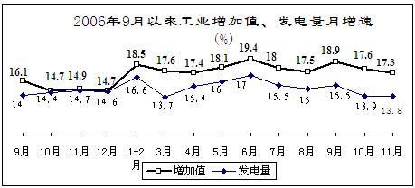 11月份,全國發(fā)電量同比增長13.8%,同比減緩0.9個百分點。其中,火電增長11.9%,比上月加快1.4個百分點;水電增長18.5%,比上月減緩11.6個百分點。京津唐、廣東、海南等省級電網(wǎng)出現(xiàn)拉限電;湖北、江西、湖南、貴州等省旱情較為嚴重,對水電出力和電網(wǎng)穩(wěn)定運行產(chǎn)生一定影響,保證電力穩(wěn)定供應(yīng)的壓力較大。1-11月,全國發(fā)電量29195億千瓦時,增長15.8%,其中火電、水電分別增長15.5%和16.1%。電力行業(yè)實現(xiàn)利潤1663億元,增長38.2%。