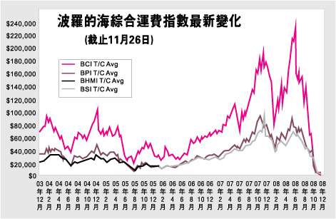 另外,BPI跌至653點,日租金跌至5271美元,跌幅高達9.3%。該項指數是BDI在過去2周出現回升的主要動力,不過由本周一起BPI開始回落,并逐日擴大跌幅。有上海船舶經紀指出,短期的升勢是受惠于中國在12月增加礦物出口稅,加上中小型貨船有利控制成本效益,刺激上周航運需求上升。不過,摩根大通船舶分析師認為中小型乾散貨船始終會受索馬里海盜活動影響,部分乾散貨船選擇繞道好望角,而不經由蘇伊士運河,令遠東至歐洲航程約增加3000海里,成本亦因而增加,船公司將更難營運。
