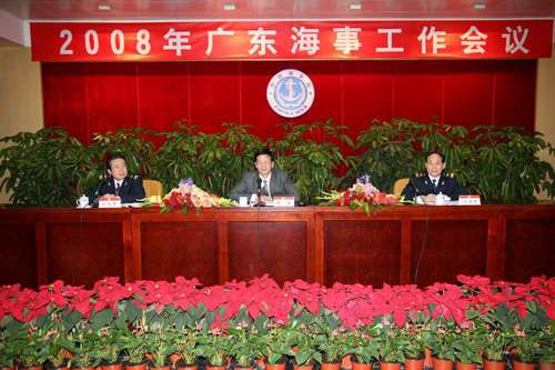 圖:2008年廣東海事工作會議召開。右一為廣東海事局局長梁建偉(本報攝)