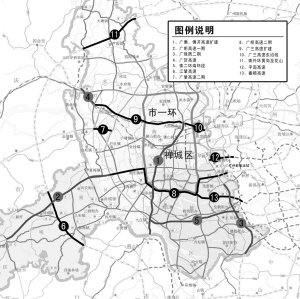 因“一環(huán)”南拓后,新增環(huán)內(nèi)面積約420平方公里(南拓之前“一環(huán)”環(huán)內(nèi)面積約520平方公里),為進(jìn)一步提高環(huán)內(nèi)路網(wǎng)通達(dá)水平,增加兩縱一橫。這新增的兩縱為“一環(huán)”東路南延線和樂龍公路;一橫為現(xiàn)狀杏龍路改造。同時(shí),我市計(jì)劃對(duì)現(xiàn)有龍高公路和G321國(guó)道進(jìn)行快速化改造。