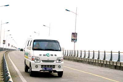 舟山煙草一輛送貨車(chē)行駛在跨海大橋上。像這樣的橋在舟山并不多,在沒(méi)有橋的地方,他們只能靠輪渡上島送貨。