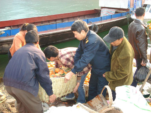 3月18日 因雪災(zāi),三峽庫區(qū)秭歸縣的3000多萬公斤臍橙正積壓在果園枝頭上,臍橙爛在樹上,全縣現(xiàn)有3個(gè)鄉(xiāng)鎮(zhèn)10萬果農(nóng)種植的臍橙因雪災(zāi)銷售不暢,損失已逾4000萬。宜昌海事局歸州海事處為三峽果農(nóng)銷售購臍橙分憂,開辟綠色通道,派出執(zhí)法人員在汽渡及鄉(xiāng)村長江渡船上為果農(nóng)銷售購臍橙保平安,一方面為汽渡實(shí)行專船維護(hù),讓外地裝運(yùn)臍橙汽車及時(shí)過江,另一方面在鄉(xiāng)村渡船上為果農(nóng)過江服務(wù),受到果農(nóng)好評。