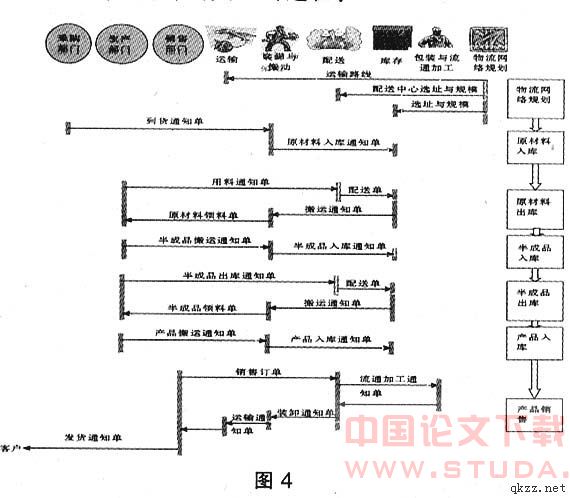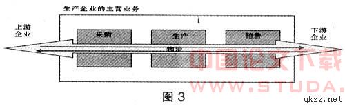 采購原材料、生產(chǎn)制造以及銷售產(chǎn)品構(gòu)成了一個生產(chǎn)企業(yè)的主營業(yè)務(wù),物品及服務(wù)正是在這樣一條鏈上實現(xiàn)增值的,而物流活動則貫穿了產(chǎn)供銷的全過程,并且將企業(yè)與其上游的供給商及下游的客戶有機(jī)結(jié)合在一起,如圖3所示: