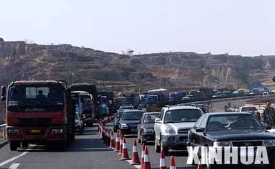 [資料圖片]石太高速公路壽陽出口附近車輛排起長龍。新華社記者 江宏景攝