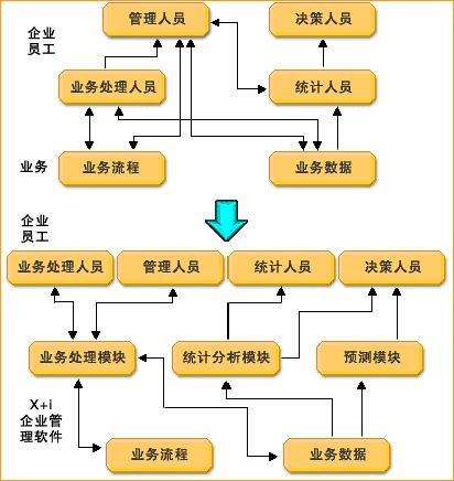 從上圖中可以看出,采用了X+i企業(yè)管理軟件后,企業(yè)發(fā)生了如下轉變: