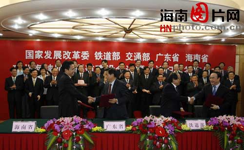 鐵道部部長劉志軍、交通部副部長翁孟勇、廣東省省長黃華華、海南省省長羅保銘在紀(jì)要上簽字。