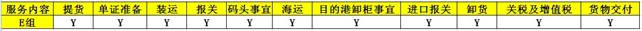 該組條款下,業(yè)務(wù)由買家指定,海外代理負(fù)責(zé)全程的物流項(xiàng)目,其中包括下列的所有服務(wù)范圍: