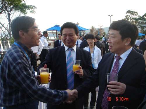 圖:交通運輸部副部長高宏峰(右)、中國海事局常務副局長劉功臣(中)與出席全國船員大會的代表們暢所欲言