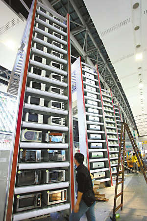 廣州會(huì)展業(yè)越來越重視品牌形象,對(duì)展商展臺(tái)也要求設(shè)計(jì)新穎。 王燕 攝