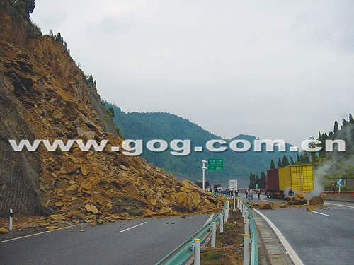 當(dāng)日清晨5點(diǎn)過,南白路政中隊(duì)及交警貴遵四大隊(duì)先后接到駕駛員報(bào)警,稱貴遵高速公路96公里處有零星泥石掉落在路面上,很不安全。就在路政人員趕往現(xiàn)場(chǎng)時(shí),該路段東側(cè)山坡突然發(fā)生大面積坍塌,約5000立方山石瞬間堆積在貴陽(yáng)往遵義方向的車道內(nèi),造成交通中斷。萬(wàn)幸的是,事發(fā)時(shí)附近正好沒有車輛經(jīng)過。