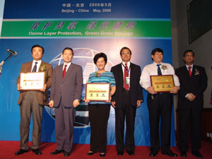 2008年5月9日,由環(huán)境保護(hù)部、國家糧食局和聯(lián)合國工業(yè)發(fā)展組織在北京國宏賓館成功召開了“中國糧食倉儲行業(yè)甲基溴淘汰總結(jié)大會”。會議的主題是“保護(hù)臭氧,綠色儲糧”。會議正式宣布中國糧食倉儲行業(yè)從2007年起已停止使用甲基溴作為糧食儲藏熏蒸劑,已按行業(yè)計劃目標(biāo)完成了甲基溴淘汰任務(wù)。參加會議的代表有環(huán)境保護(hù)部、國家糧食局、聯(lián)合國工業(yè)發(fā)展組織、天津等9個省區(qū)(市)糧食局主管領(lǐng)導(dǎo)、中儲糧總公司、中糧集團(tuán)、糧食科研單位、設(shè)備制造企業(yè)以及34個甲基溴淘汰示范庫的糧食倉儲企業(yè)和新聞媒體的代表等。環(huán)境保護(hù)部祝光耀副部長、國家糧食局郄建偉副局長、聯(lián)合國工業(yè)發(fā)展組織駐華代表處首席代表Mr.Ajmal(安吉蒙)先生出席大會并致辭。環(huán)保部外經(jīng)辦莊國泰主任宣讀了《環(huán)保部和國家糧食局關(guān)于表彰中國糧食倉儲行業(yè)淘汰甲基溴先進(jìn)單位的通知》,會上向“大連市糧食局”等17個先進(jìn)集體單位頒發(fā)了“中國糧食倉儲行業(yè)淘汰甲基溴貢獻(xiàn)獎”。會議對中國糧食倉儲行業(yè)甲基溴淘汰項目進(jìn)行了總結(jié)交流,對保障技術(shù)和替代技術(shù)新藥劑進(jìn)行了研討和展望。