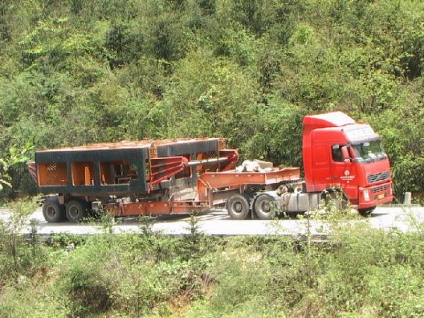 TBM項(xiàng)目分為普通貨物和超寬件大件運(yùn)輸兩部分,普貨部分于2007年12月26日啟運(yùn),第一車也于2007年12月30日順利到達(dá)錦屏工地;普貨部分并于2008年4月10日全部安全到達(dá)工地。