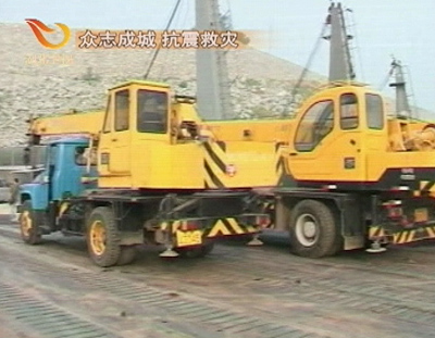 宜昌臺(tái)記者 傅偉:我現(xiàn)在是在湖北省宜昌市一個(gè)緊鄰三峽大壩的一個(gè)滾裝船碼頭,在我身邊,用于輸電線路搶修的大型施工設(shè)備正在裝船。再過一會(huì),這條滾裝船就將從這里出發(fā),把滿船的抗震救災(zāi)物資送往災(zāi)區(qū)一線。