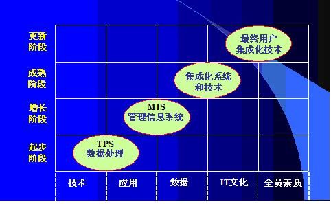 用此模型考察行業(yè)信息化,可以認為,煙草行業(yè)整體上處于增長階段,其典型特征就是系統(tǒng)林立,耗資甚大,而技術(shù)標準與業(yè)務規(guī)范并不統(tǒng)一。隨著實踐的發(fā)展,行業(yè)必須充分考慮在標準規(guī)范基礎上的數(shù)據(jù)集中管理和數(shù)據(jù)綜合利用、深度挖掘等問題,也就是向成熟階段過渡。這是幾十年國內(nèi)外信息化建設實踐所證明的不可逾越的一個階段。