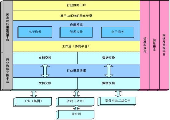 行業(yè)進行電子政務、電子商務和管理決策三大應用體系建設,需要通過統(tǒng)一的、具體的行業(yè)信息化項目建設來實現(xiàn),以構(gòu)成三大應用體系。