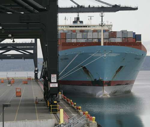 圖:美國要先于IMO修改自己的船舶壓艙水標準,顯然在國際間制造雙重標準,作出前例,航運業界自然會關注。圖是馬士基貨柜船停靠在奧克蘭港口(美聯社)