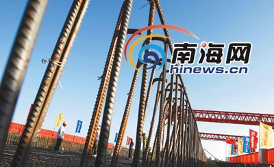6月21日晚8時(shí)整,中鐵四局瓊海制梁場鞭炮聲聲,機(jī)器轟鳴,東環(huán)鐵路首片675.5噸箱梁開始澆筑預(yù)制。