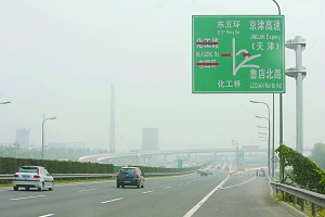 昨日,京津高速公路全線正式開(kāi)通,五環(huán)路化工橋入口處的指示牌上顯示開(kāi)通信息。