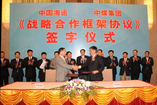 中國海運(集團)總公司本月23日及中國中煤能源集團在上海簽訂《戰略合作框架協議》,標志著雙方的合作進入嶄新發展階段。中海集團總裁李紹德表示,下一步雙方將于資本層面合作,共同出資成立合資公司。